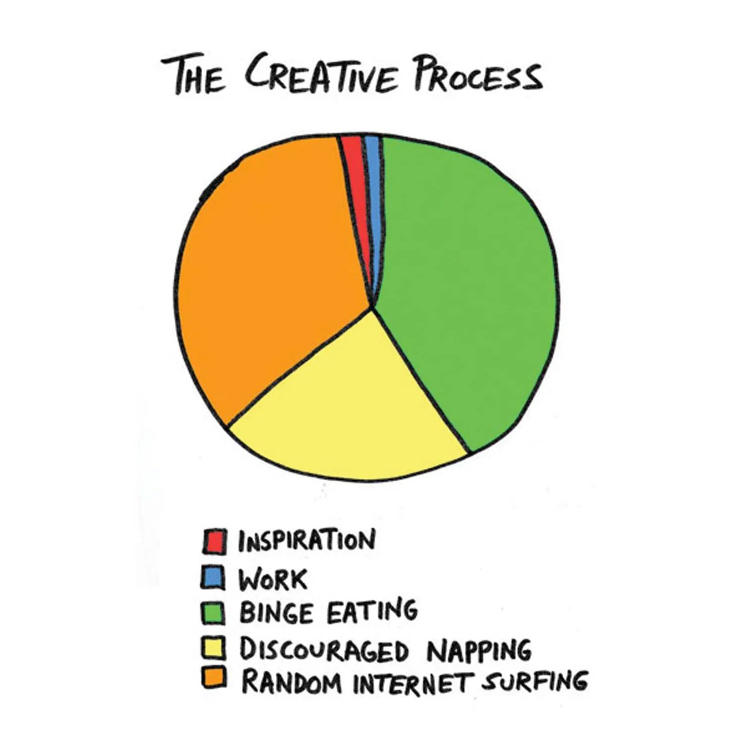 Researchers have found three ingredients for triggering creativity: 1. Exposure to novel stimuli (like learning something new, looking at art or taking an unfamiliar stroll); 2. Deliberate rest (letting yourself think about something else, or stretching, or having a relaxing meal); 3. And brief creativity rituals (like cleaning your desk or breathing deeply for a few minutes). Stress can be a creativity killer: One solution is giving your mind small constraints (“I’m only going to write for 10 minutes”) that lessen the pressure to do something great. However, the right kind of stress — like a fun challenge — can create ‘creative desperation’ that leads to breakthroughs. So, if you’re stuck, step outside, read something weird and sit quietly for a few minutes. Then, make your project into a game. (“How many sentences can I write while holding my breath?”)